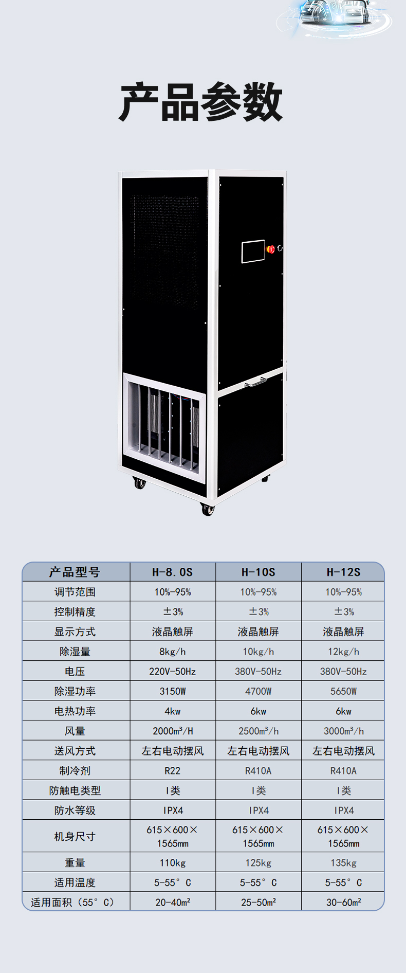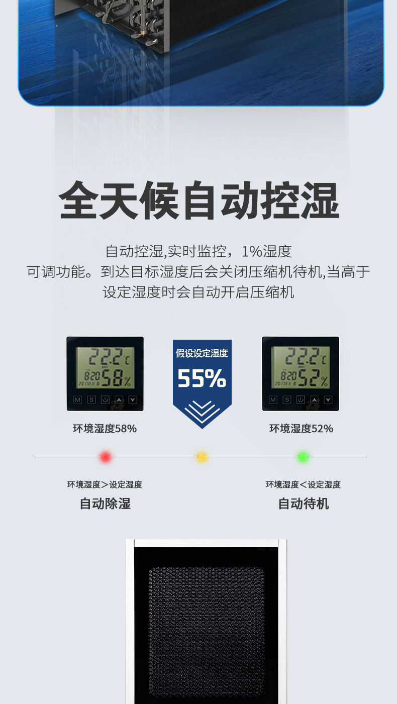 備注:濕度達(dá)到設(shè)定值,設(shè)備會(huì)自動(dòng)停止工作,環(huán)境濕度高于設(shè)定值,自動(dòng)啟動(dòng)降低用電能耗。