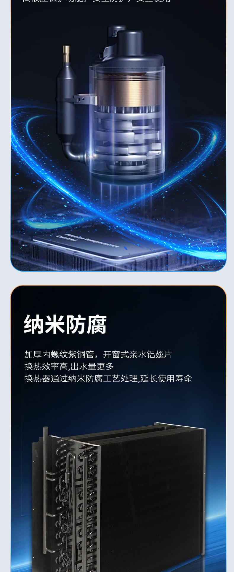 ◎采用0.55mm加厚內(nèi)螺紋紫銅管,換熱效率高,防腐處理工藝